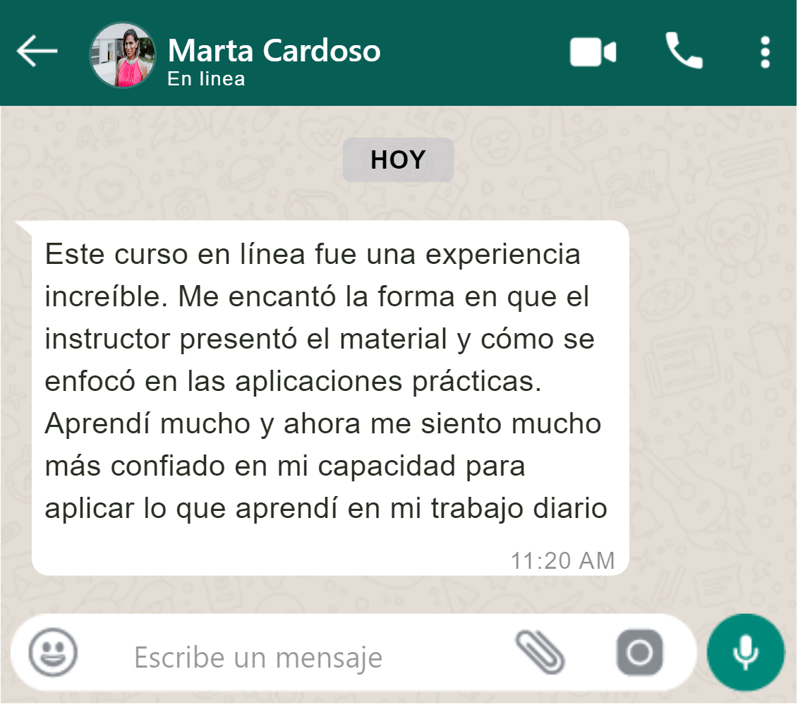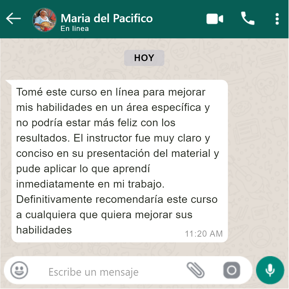 Puedes mostrar el curso por dentro: Aquí puedes agregar una imagen de cómo se ve el curso por dentro si es que tienes acceso a este material, de lo contrario no pasa nada, pero sería lo ideal para que las personas tengan una idea más clara de qué es lo que recibirán. Si tienes cómo ponerte en contacto con el experto para que te pase este material sería lo máximo. por ejemplo: